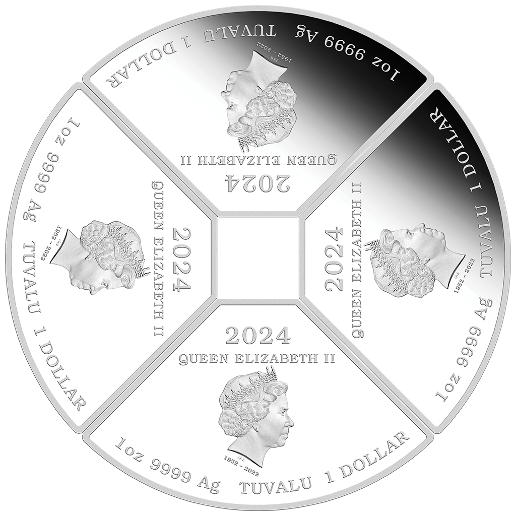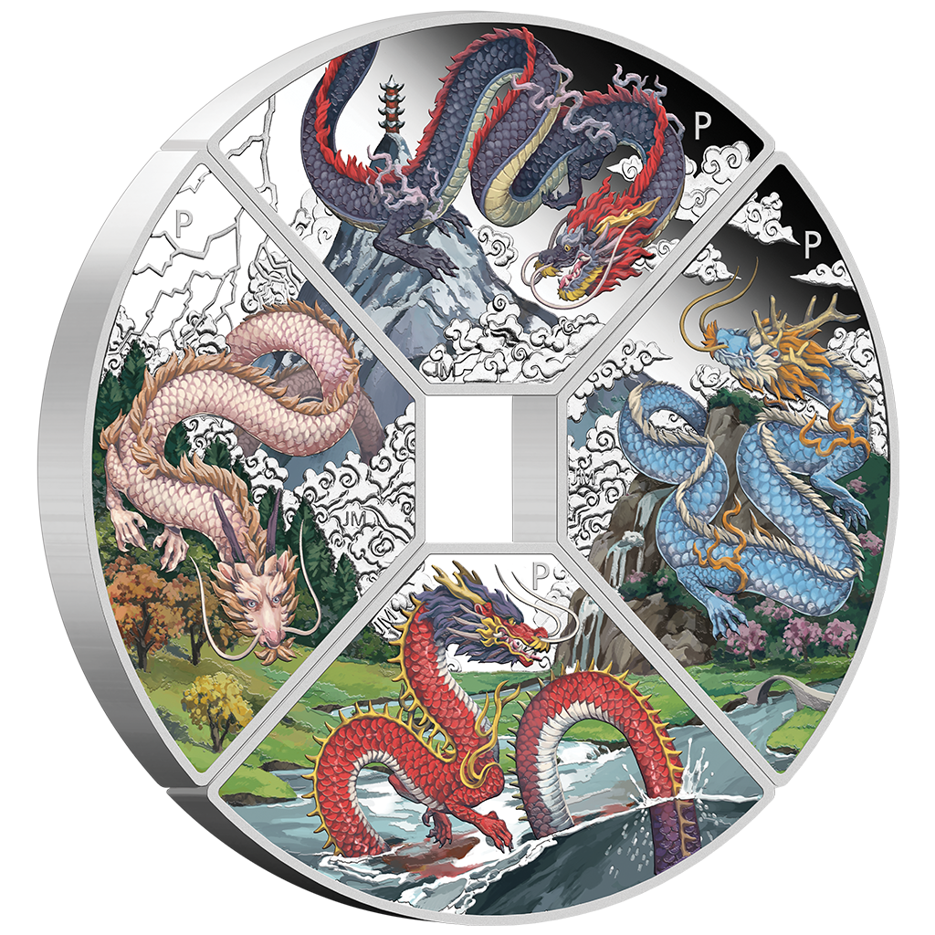 Tuvalu 2024 $1 Lunar Year of The Dragon 1oz Silver Coloured Proof 4 Quadrant Coin Set