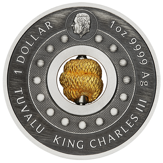 Tuvalu 2025 $1 Lunar Year of The Snake Rotating Charm 1oz Silver Antiqued Coin