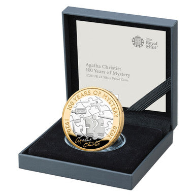 UK 2020 £2 Agatha Christie 100 Years of Mystery Selectively Gold Plated Silver Proof Coin