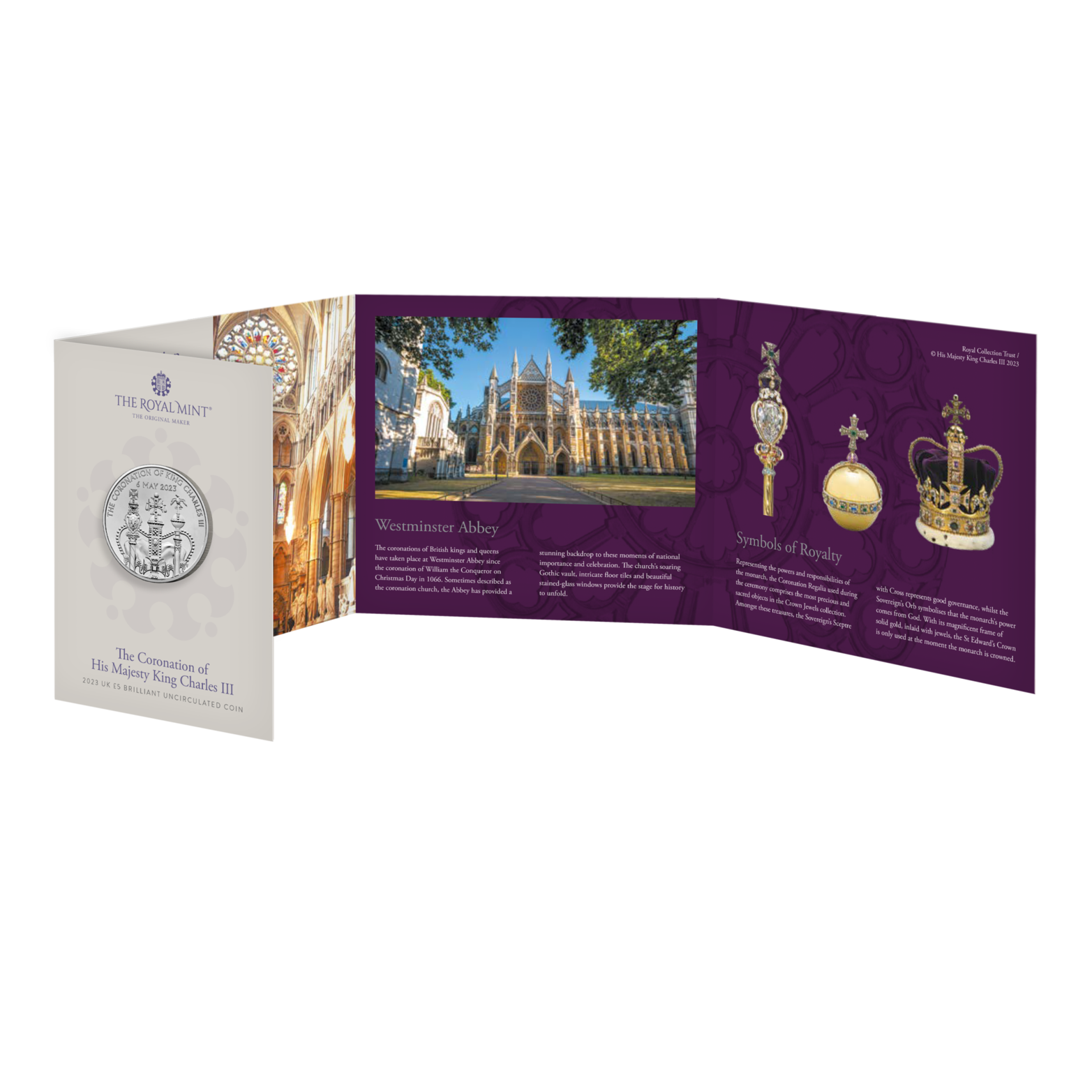 The coronation of His Majesty The King marks the beginning of a new chapter for the British monarchy. On 6 May 2023, the coronation of Their Majesties King Charles III and The Queen Consort took place at Westminster Abbey. Struck to celebrate this momentous event in British history, the coin serves as a lasting reminder of this historic occasion.