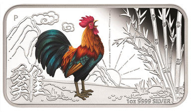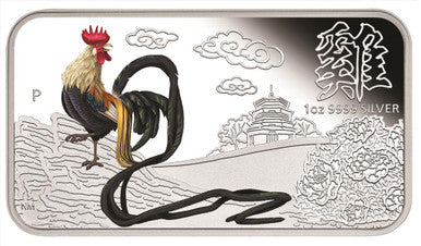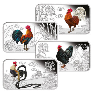 Tuvalu 2017 $1 Lunar Calendar Year of The Rooster 1oz Silver Coloured Rectangle 4 Coin Proof Set