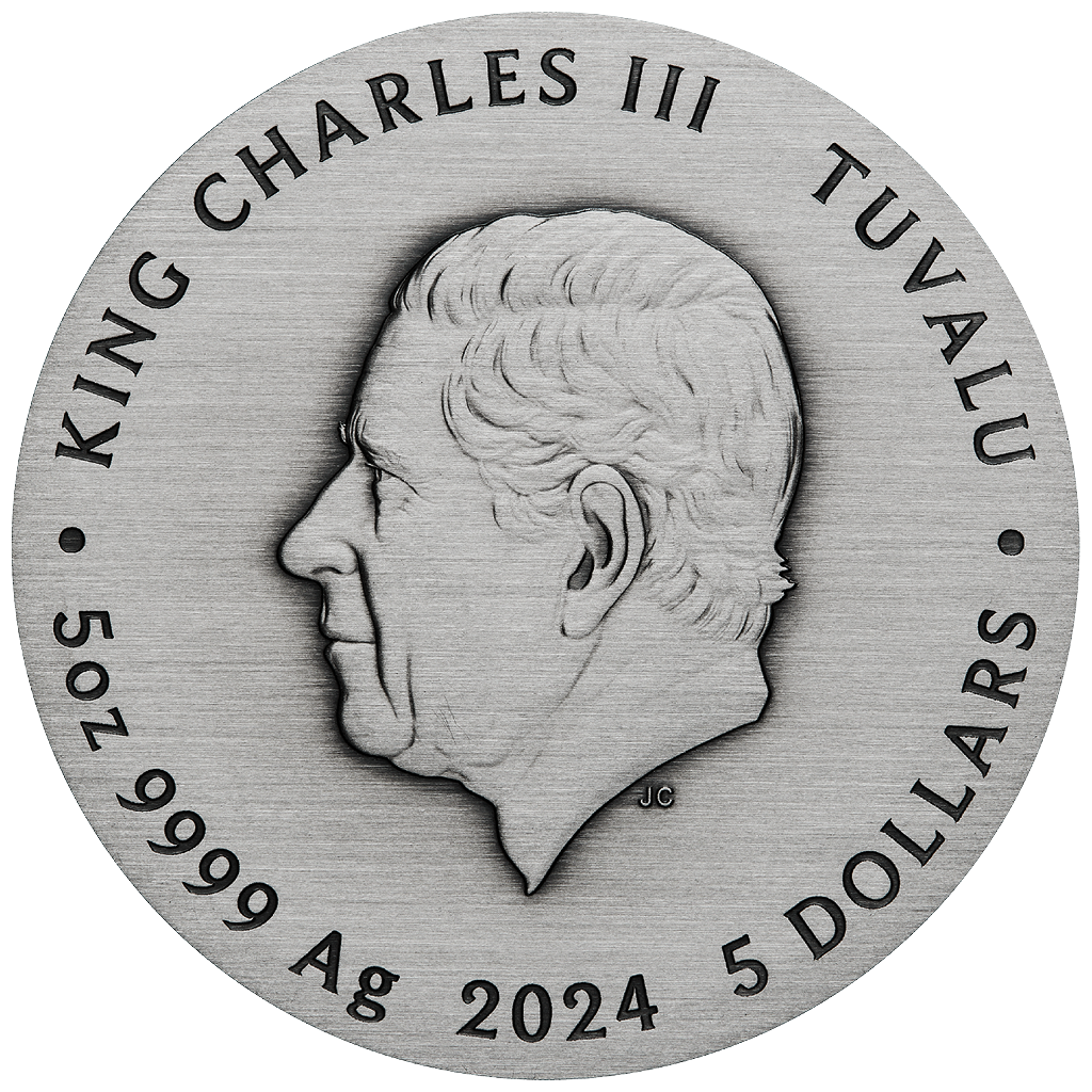 Tuvalu 2024 $5 Starry Sky & Planets 5oz Silver Coloured Antiqued Coin